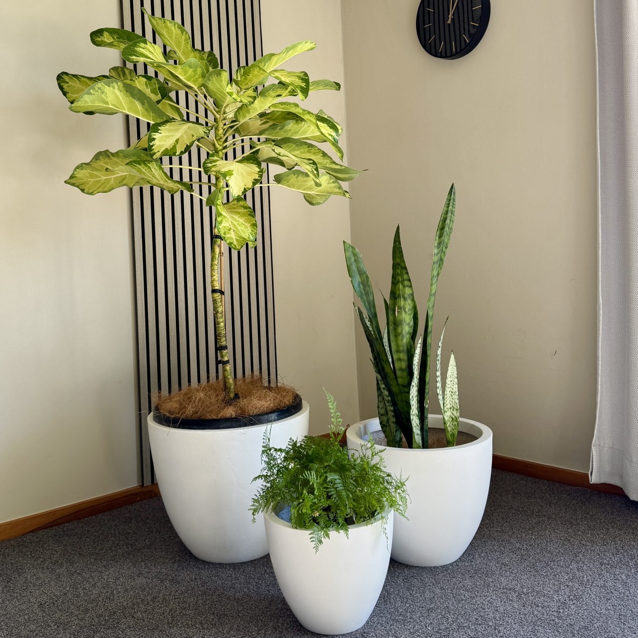 Premium White Egg Planter (45 cm) pictured is not included — plant is supplied in a standard 40 cm nursery pot.