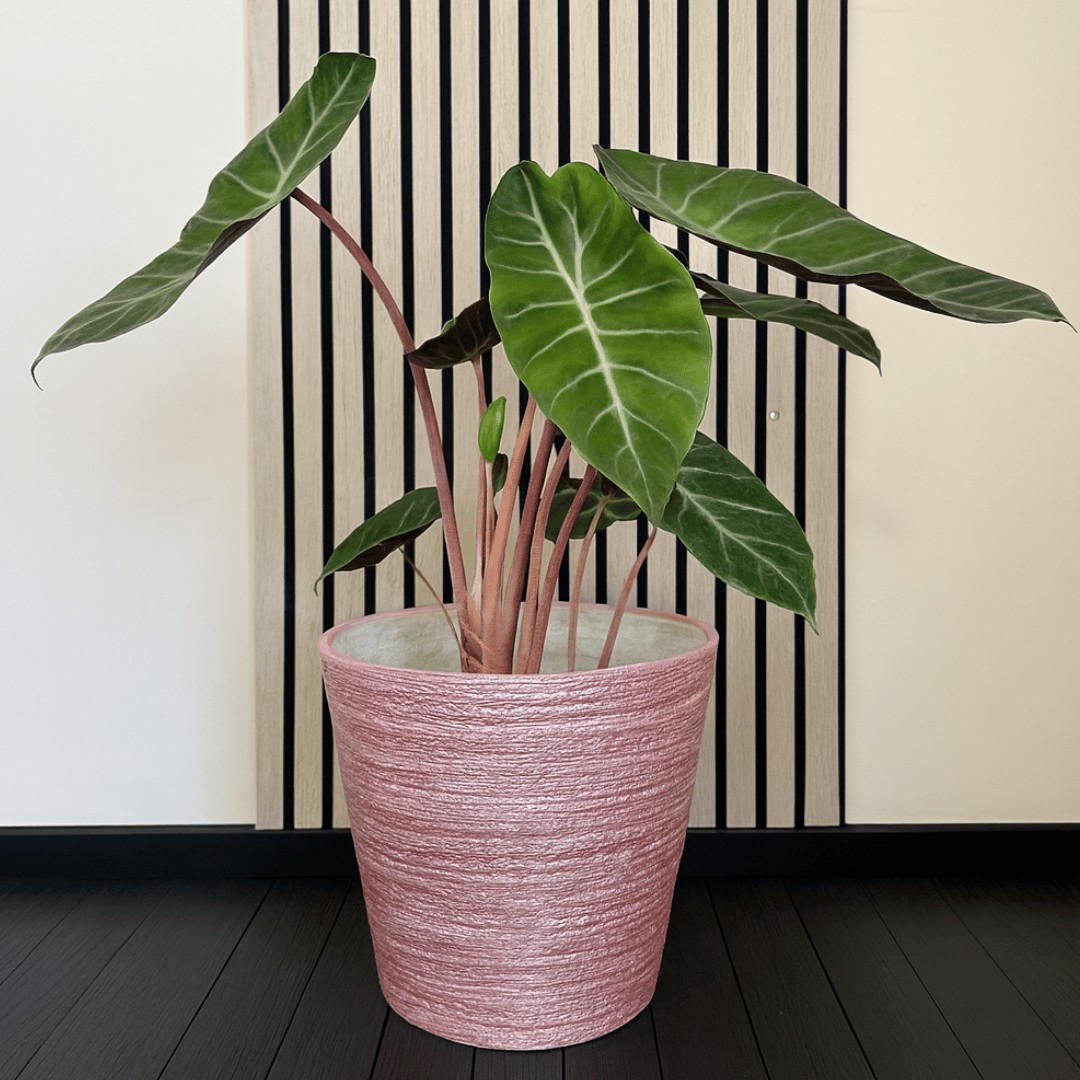 Stone-look metallic pink planter, sealed for indoor use. Perfect for Fiddle Leafs, Peace Lilies, or your favourite indoor plants. Limited edition.
