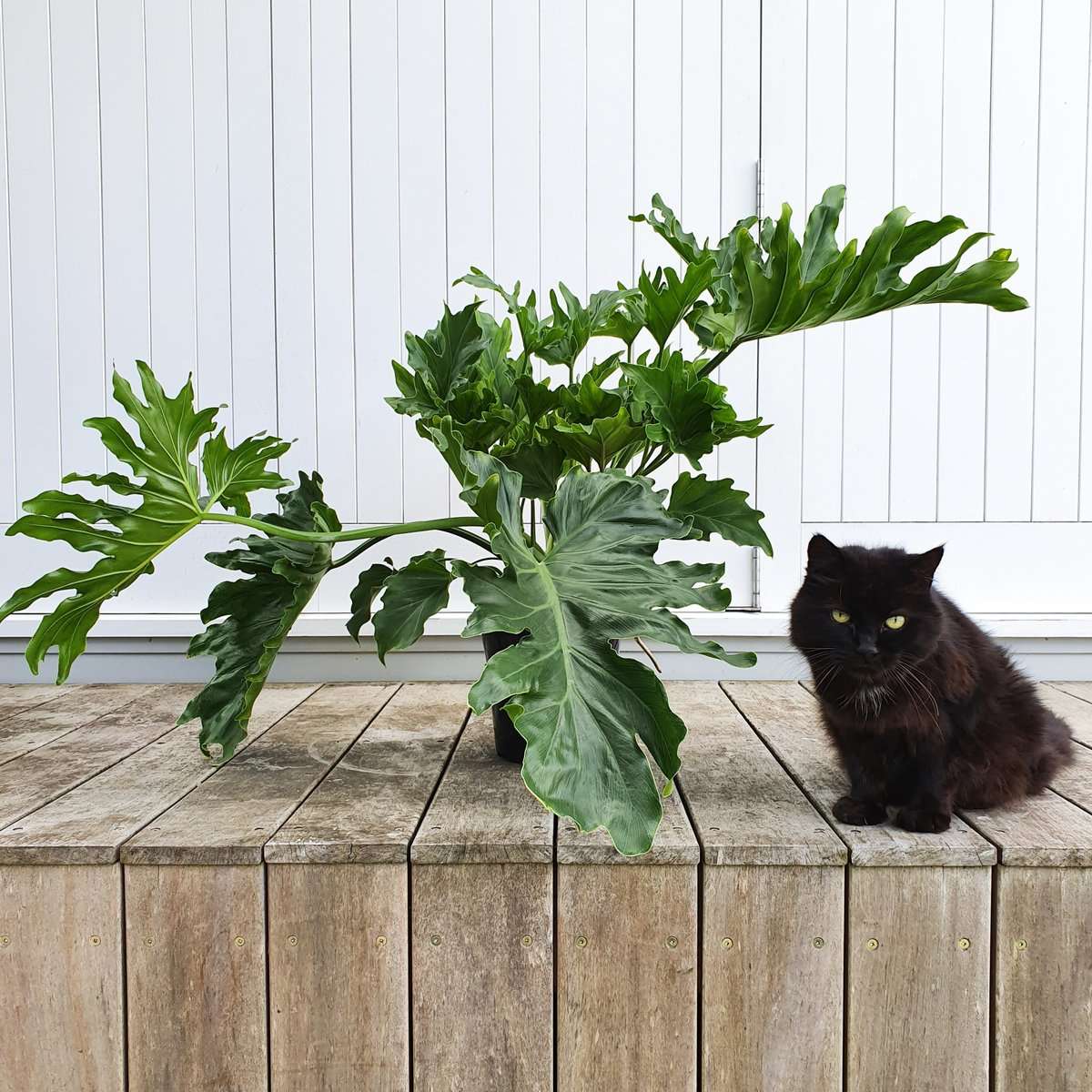 This tropical beauty, Philodendron Selloum Hope, features large green leaves that are deeply lobed.