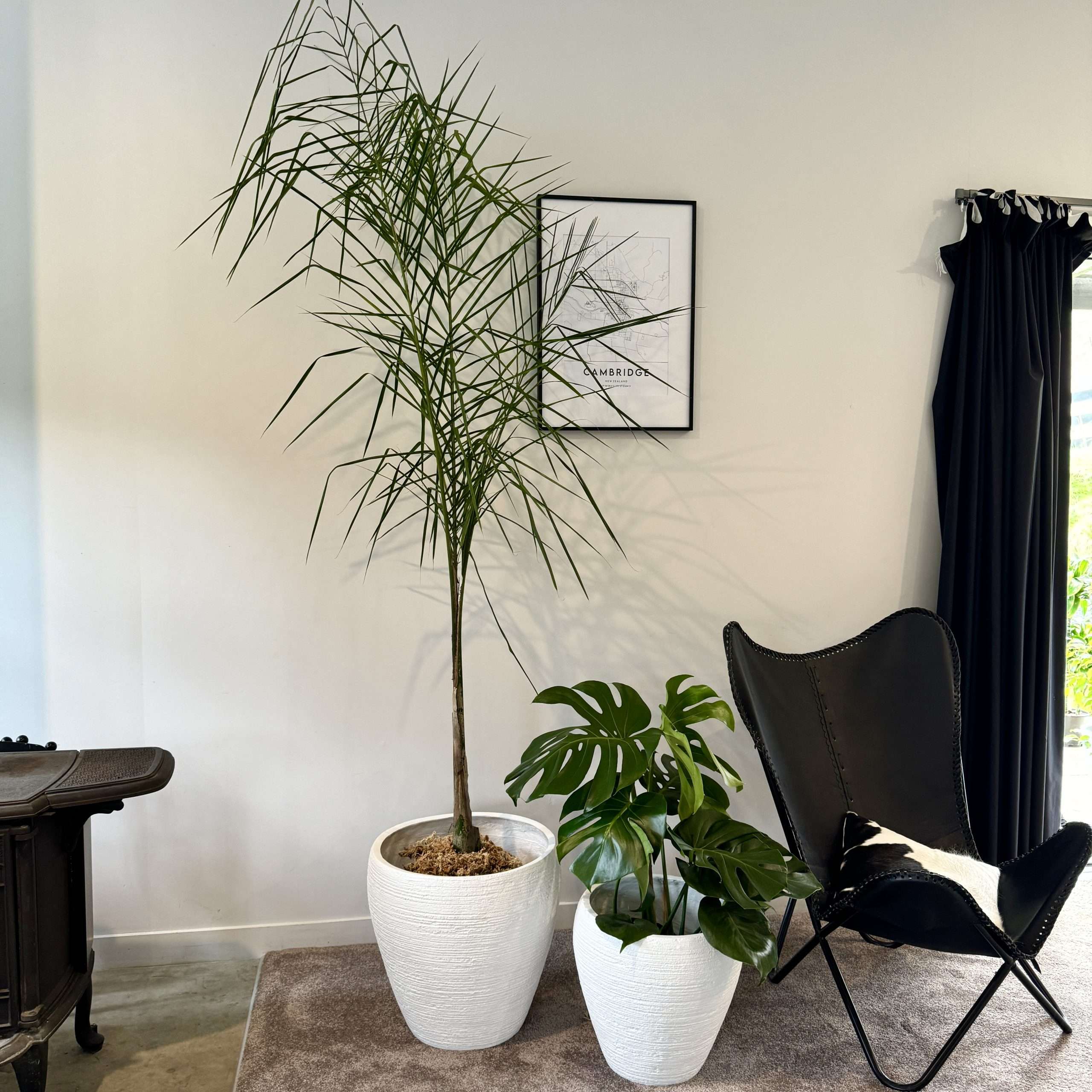 The combination of the Queen Palm and Triangulum Planter brings a touch of the exotic into your indoor environment. Whether you want to evoke the calm of a tropical oasis or add a modern, geometric statement to your home, this pairing provides both beauty and balance. The Queen Palm’s lush, arching leaves work in perfect harmony with the Triangulum Planter’s structured, minimalist form.